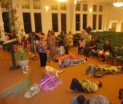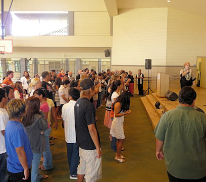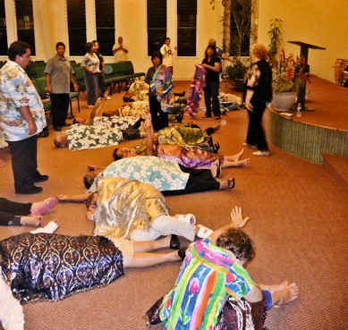 In the March meetings, Pastor Vill Galiza wept in the Sunday morning’s service as the altar filled up with young people who received salvation and got right with God. In another meeting, Bishop Frank Puni of God Can Christian Center was slain in the Spirit at the altar, and was weeping and weeping in the visitation. Then, a deep repentance fell upon the body of Christ. Many came forward to the altar. Men, women and children were slain in the Spirit, their bodies spread across the sanctuary (see pictures). On May 3rd and 4th, we returned again to Kauai and the two churches came together once again. Pray that these and other leaders will jump on board this Glory Train and welcome the move of God across their land as it is all about spiritual hunger. We will be returning once again, to Kaua'i, tentatively in late August, for more church meetings and also to have a "Pastors Conference", called, “Unity For Revival”. Pastor Vill & Grace Galiza from Aloha Church, and Bishop Frank & Lauri Puni, of God Can Christian Center, gave exhortations to the body of Christ. From the very first meeting Sunday morning May 4th, at God Can Christian Center, Deborah gave an call of repentance asking a simple question. The question was this, “If in the days of Moses’ God opened the earth and swallowed up 23,000 people for idolatry and fornication, then by God standards, how many of us sitting here today would get swallowed up TODAY because of such sin in our lives?” More preaching followed and in the end the response was astounding. Two-thirds of the church came forward, when she gave the alter call, repenting before God! (see pictures) During our recent trip in May, to Kauai, Deborah gave a word of knowledge about a woman who had an accident and that God wanted to heal, deliver, and restore her life. A woman who had numbness in the left side of her body for 20 years came forward. The glory and power of God fell upon that woman and she was completely healed. But deliverance was just not only for her, but the Glory of the Lord visited her entire family. (Click: Kaua'i Video Ministry in Action ) The next two meetings, at Aloha Church, a sweet cloud of Glory filled the sanctuary. There were so many healings by the Word of Knowledge that it would take pages to record them. One story in particular was about an elderly gentleman who is now 86 years old. 50 years ago he was a pastor on Kauai and prayed for a move of the Holy Spirit and revival. As Deborah interviewed him, he shook and wept. He was so thankful that God allowed him to come back and see the move of the Spirit and the long awaited answer to his prayers. Deborah then asked him to remove his hearing aids. He had partial deafness in both ears. Deborah had the whole church pray and stretch forth their hands. He could immediately hear and was slain in the Spirit (Pastor touched YouTube click here). Several elderly people were healed all over the sanctuary from bone problems and arthritis. Also, in one of the meetings was a lady in great pain that was recently diagnosed with cancer of the spine. She could hardly walk. After the church prayed she could bend and move in ways she had not previously been able to do. Several people were slain in the spirit again, and again. The majority of the church was under the glory cloud, including young children. Several other people were receiving emotional healings and getting taken into heaven. Most of this recorded on DVD. Some people wept as they saw God do miracle after miracle. The heavens are open over the islands. Some of the Testimonies: Here is Linda Tani’s written testimony of what God did for her. “On Friday night, when I went up for prayer, I went down under the power of God. While I was on the carpet, I could feel my jaw start to shift. I had gone to the dentist last month and when he fixed my tooth, it wasn’t the same when I bit down on the back of my right side. Now it feels even when I bite down.” Allison Davis also shared her story with us. “During the women’s conference on February 5-6, I was healed of a lump on the left side under my shoulder blade. With just a slight touch I would wince with pain. It has been more than a month and I am still pain free.” We thank God for these awesome healings and miracles! Several of the pastors and leaders had a fresh touch from the Holy Spirit and some were on the floor for over an hour. Bishop Frank Puni gave Tom and Deborah a good report that after the FireGate team left, an outpouring of the Spirit fell in each meeting that followed, with waves of glory being released. Bishop Puni's testimony of what took place: “Sunday night at Aloha Church, brother Tom opened his Bible and begun to teach and laughter fell upon my wife, Pastor Lauri Puni and Pastor Mary Ann. Then the power of the Holy Ghost filled my body and I started to shake and vibrate uncontrollably so I stood up and started to spin in a circle then began dancing in the Holy Ghost. Then the fire started to jump from person to person. Laughter broke out and others began shaking under the power of the Holy Ghost. Still others had the fire hit their feet and they stood up hoping that in standing, the fire would have gone out of them, but instead it only increased. God came in our midst and many were having wonderful and beautiful encounters in the manifest glory. Many were set free and refreshed. Pastor Vill Galiza, for the last two months had been troubled by dizziness and being light-headed and had a hard time finding his balance. On Sunday night, a word of knowledge came forth about someone having vertigo and equilibrium that was off. Hands were laid upon Pastor Vill Galiza and he was healed because of God’s love for him. As a minister of the gospel of Jesus Christ, we have and are tremendously blessed by Revivalist Tom and Deborah Gliebe and have received FireGate’s Ministry with open arms and open hearts. The hearts of our fellowship, God Can Christian Center, has been touched b